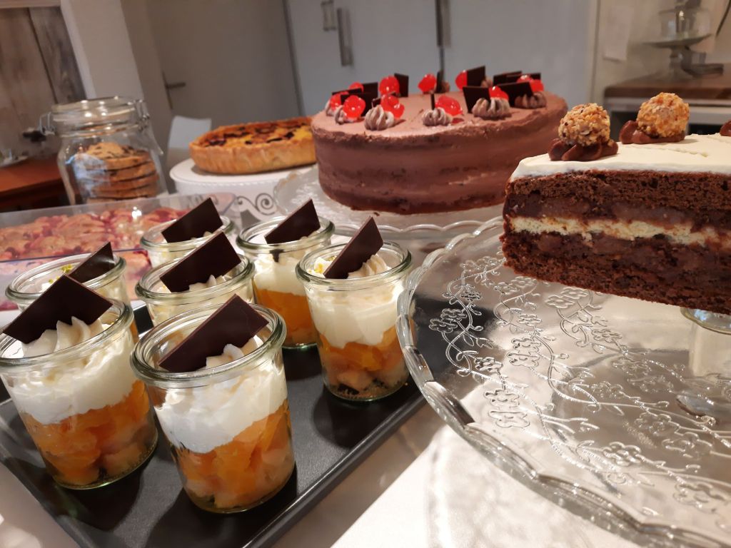 Ob am Nachmittag oder schon Vormittags eine köstliche Auswahl an sich abwechselnden Desserts und Kuchen erwarten dich. Meine Dessertauswahl ist saisonal, meist hat es Schokolade in einer Form dabei und etwas fruchtiges. Torte/Roulade, Kuchen, Cremes/Glace und Früchte versüssen Dir den Tag. Gerne verkaufe ich die Süssigkeiten auch um Zuhause geniessen zu können. Benötigst Du eine grössere Menge bin ich froh um eine Vorbestellung.