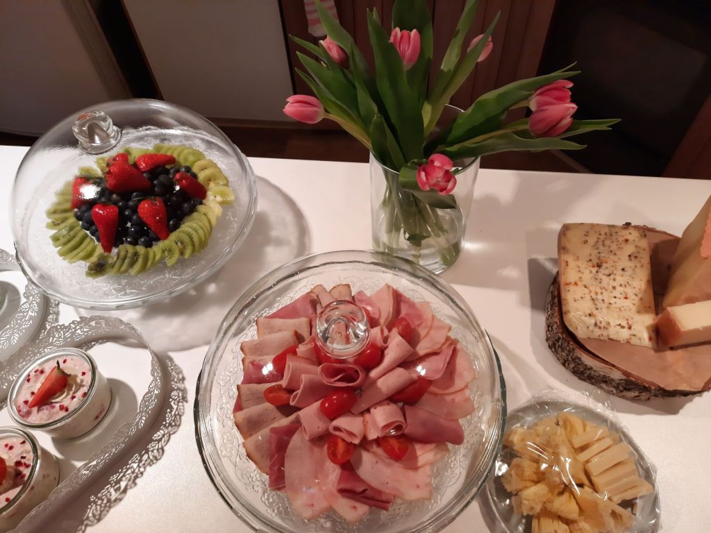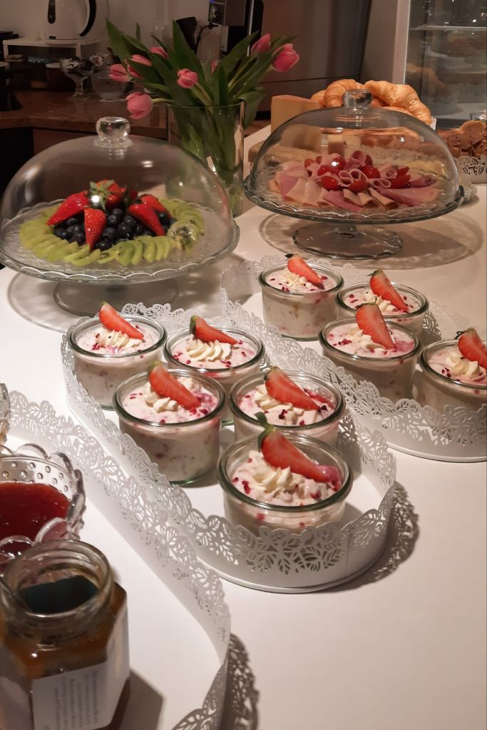 Mein Frühstücksangebot besteht aus Brot, Zopf, Gipfeli, hausgemachter Marmelade, Honig, Nutella, Butter, Birchermüesli, Käse-und Fleischauswahl. Dies alles kann individuell kombiniert werden-vom kleinen Frühstück bis hin zum Zmorgeturm.