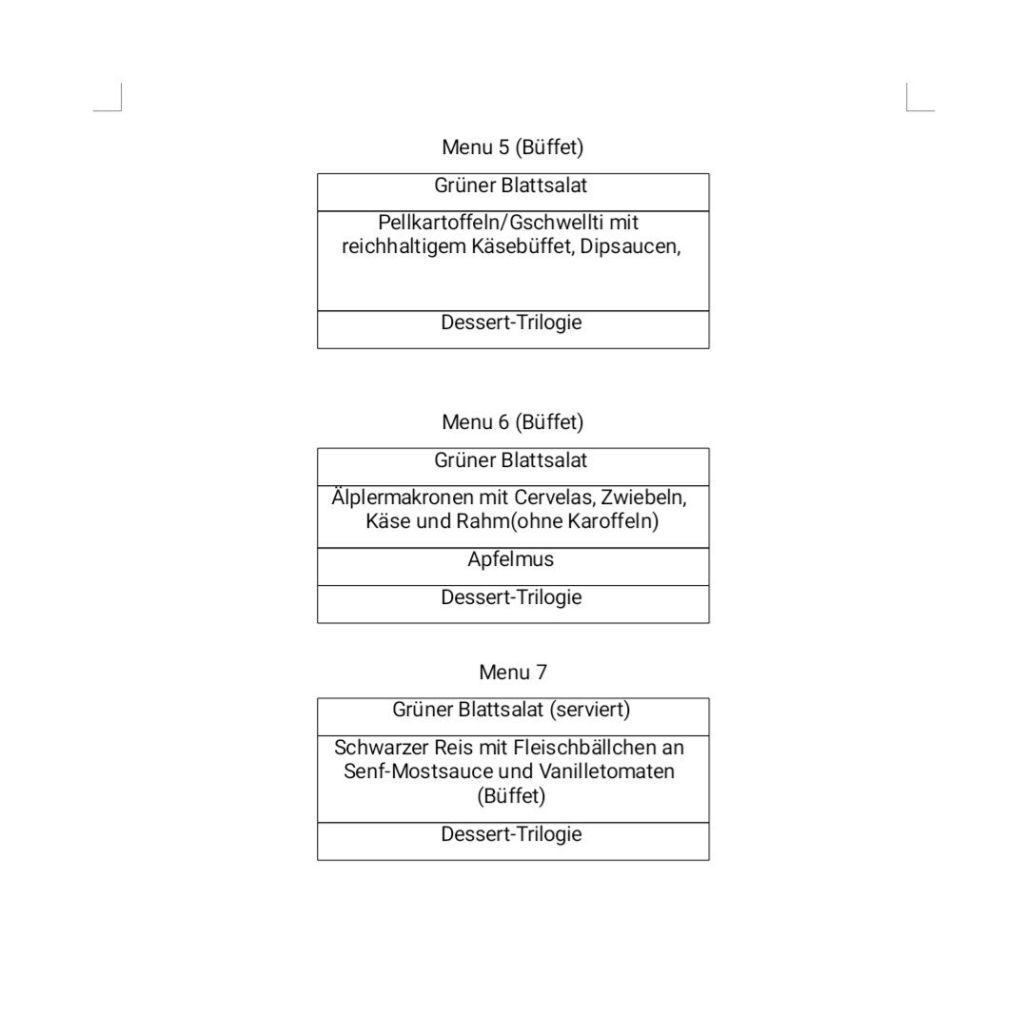 Sehr beliebt ist das Gschwellti Essen mit einem Käsebüffet. Weitere Menu Vorschläge findest du am Ende der Slideshow oder nimm Kontakt mit mir auf. Mein Cafe bietet Platz für 20 Pers.