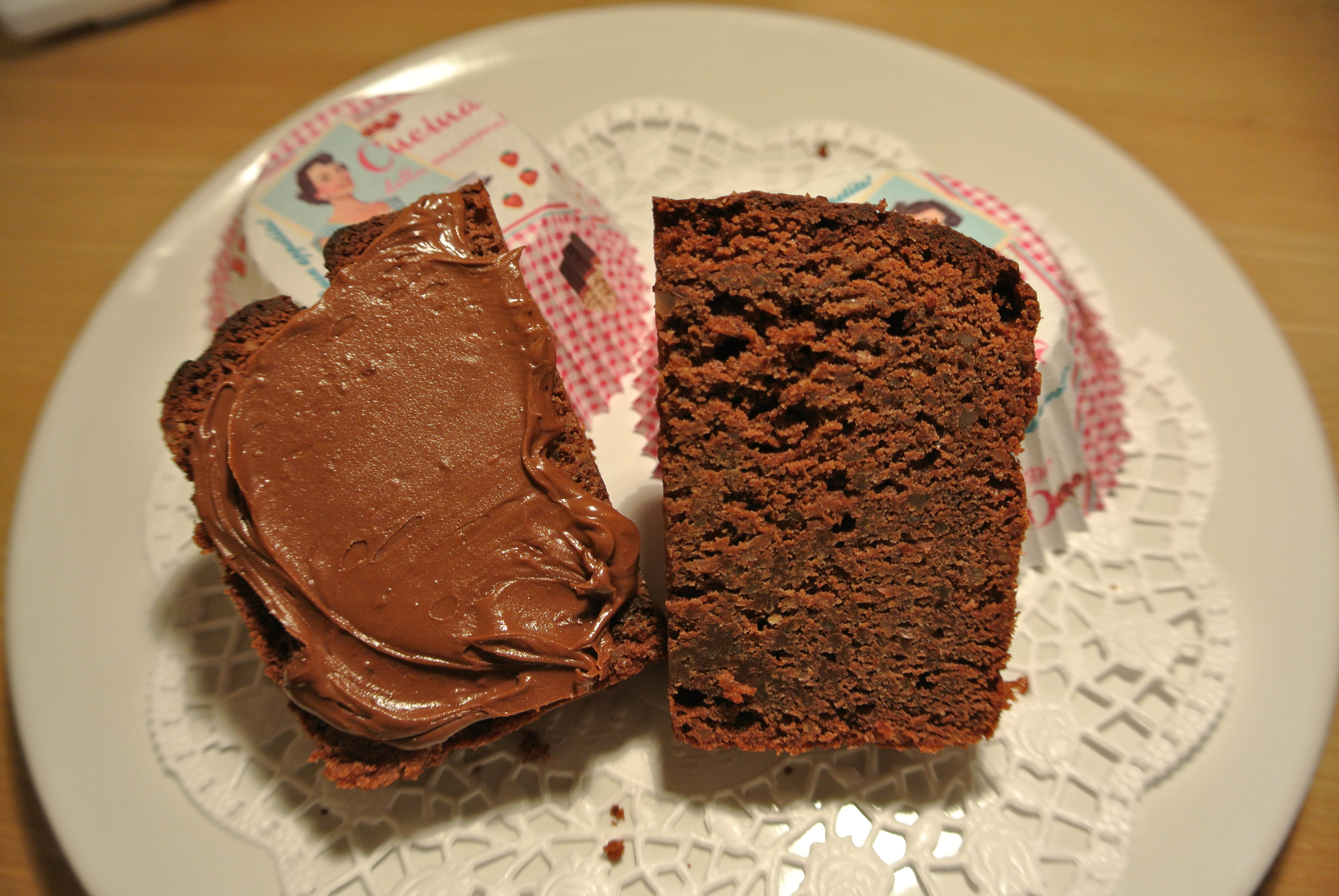 Also beim Schokoladen ligth Cake wussten wir uns zu helfen…wir bestrichen das ganze dann einfach noch mit Nutella…