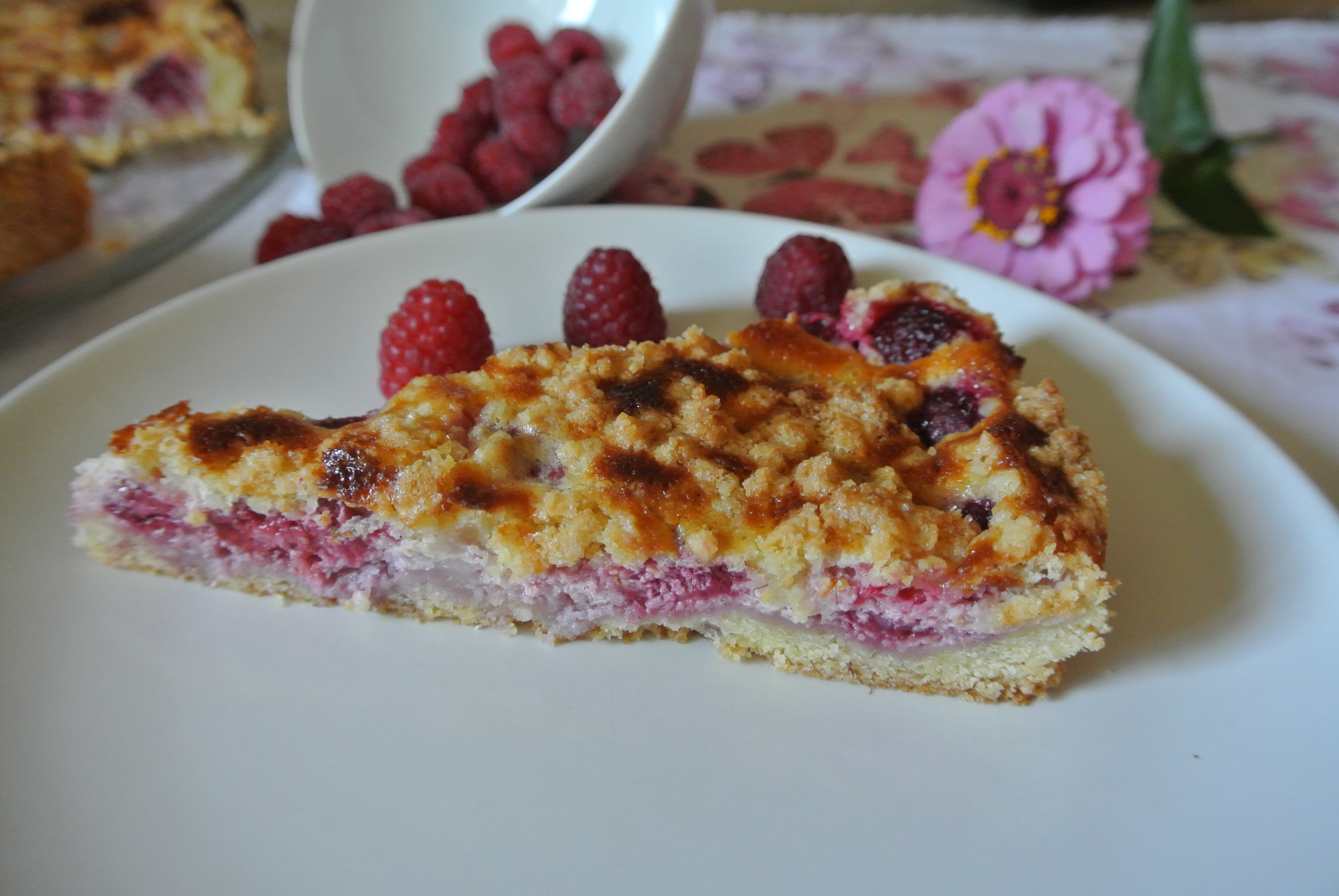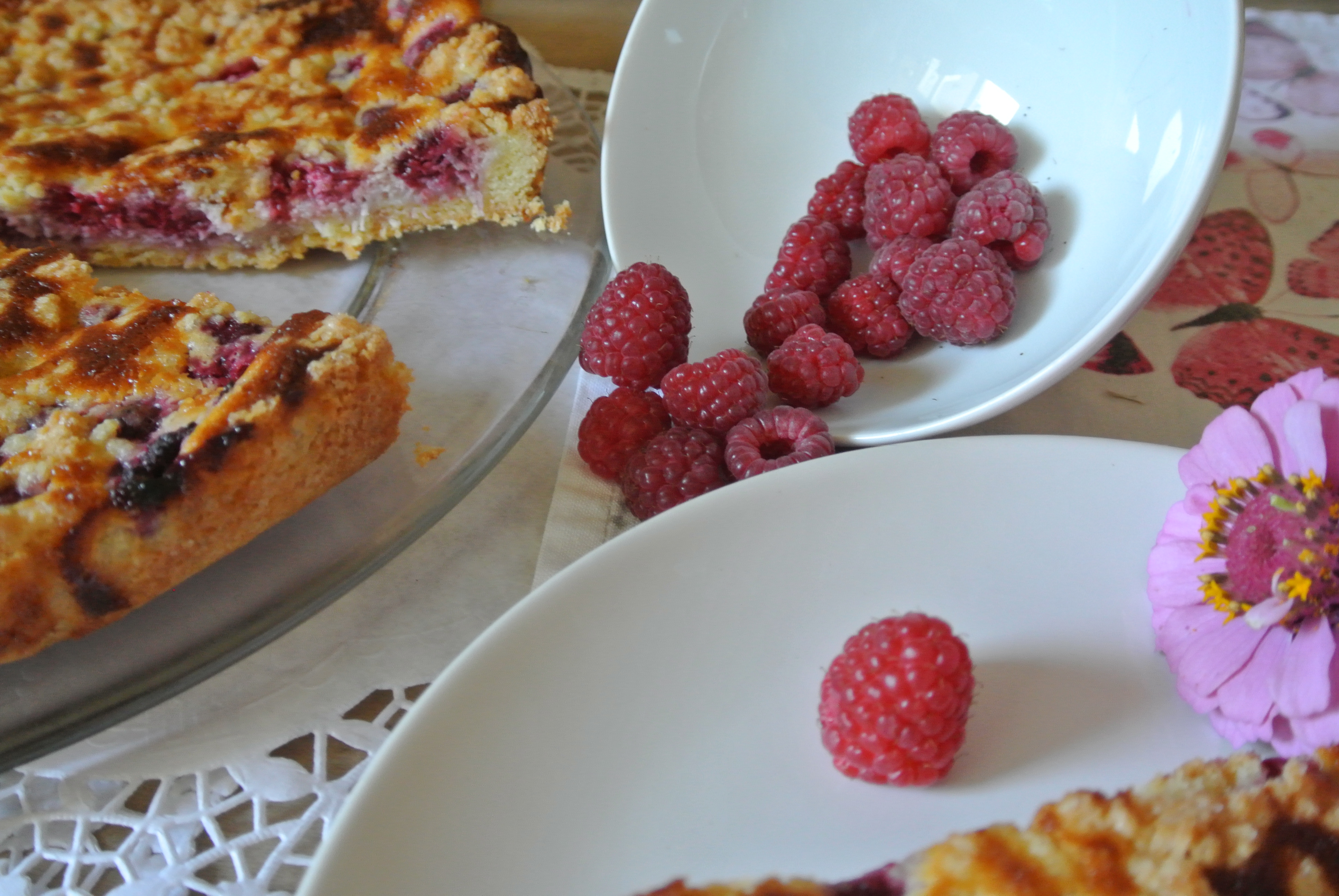 Heute morgen nahm ich mir vor ein Himbeer-Streuselkuchen zu backen,das Rezept schien mir perfekt für diesen Sommertag…..