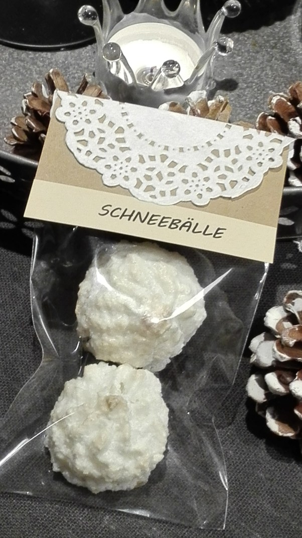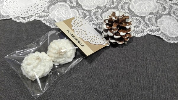 Meine Kokosmakronen habe ich umgetauft in Schneebälle und mir Gedanken gemacht wie ich sie verpacken könnte. Dies ist dabei herausgekommen.