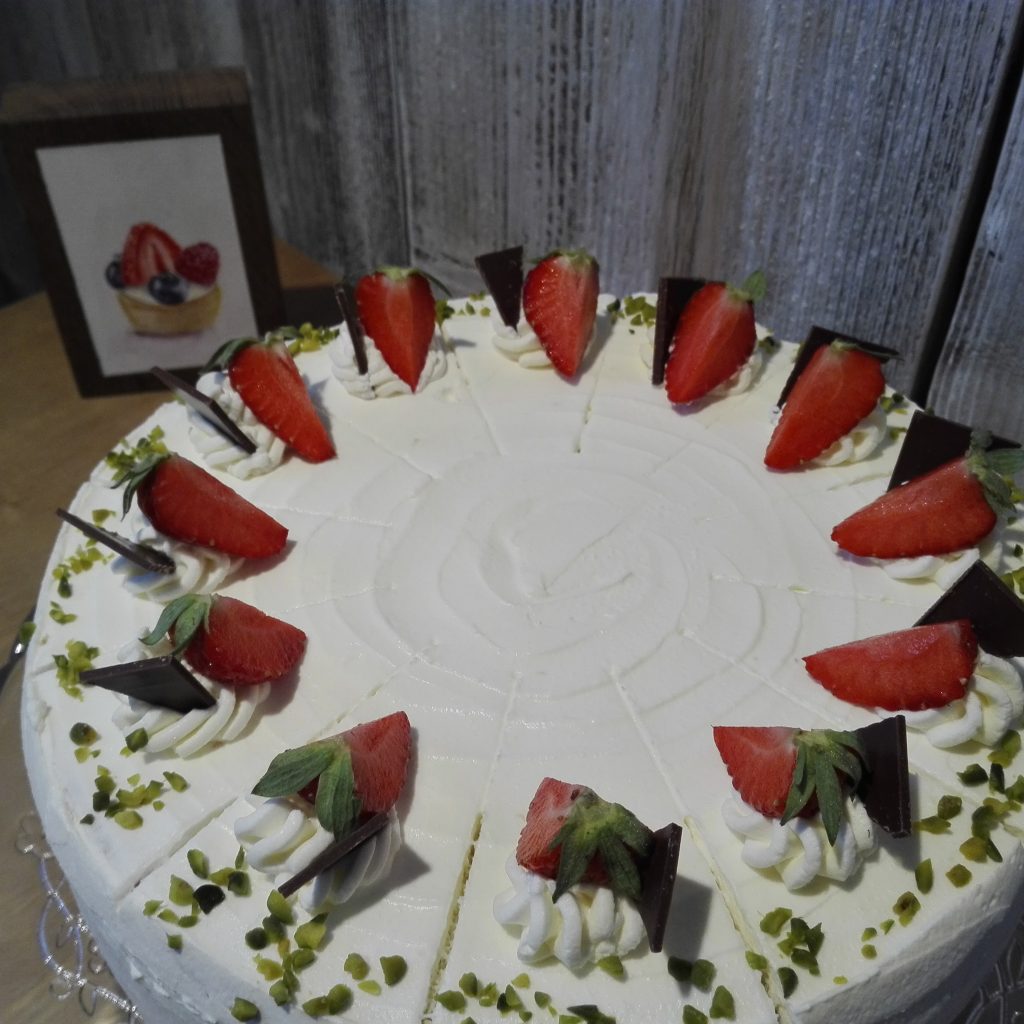 Ganz kurz sagte noch die Aprikosen – HALLO- in meinem Cafe. Hier als Fruchtspiegel in einer Torte. Diese Torte war sehr faszinierend,die orange Aprikosenfüllung , kombiniert mit weissem Schokoladenrahm. Sehr lecker.