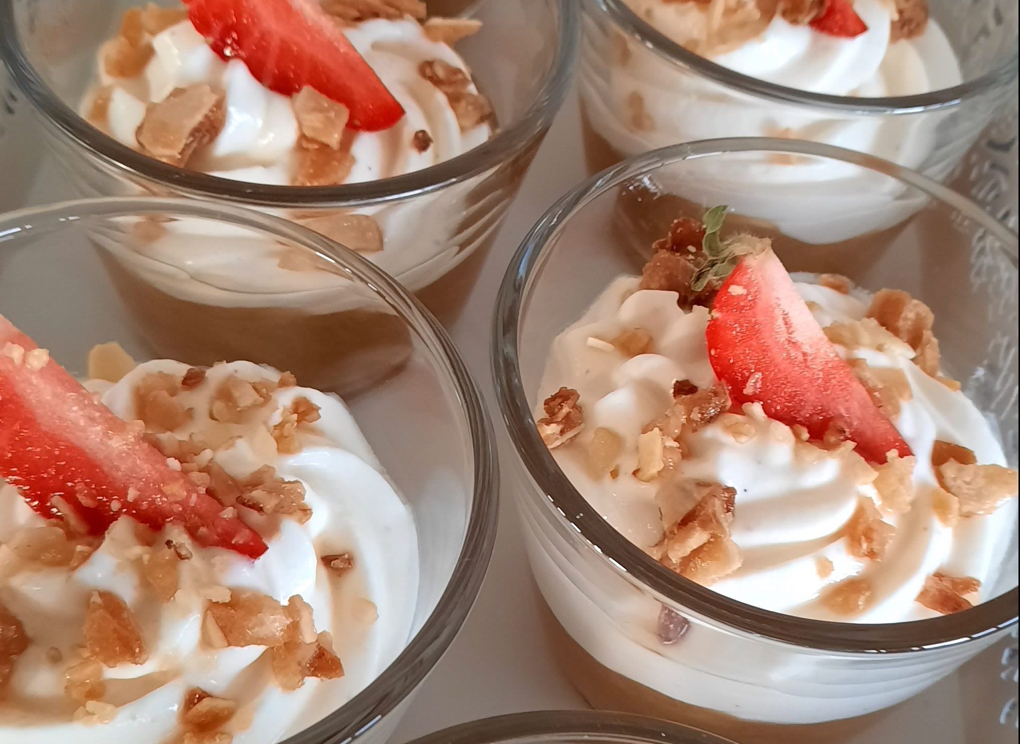 Dieser Dessert besteht aus einem Rhabarbervanillekompott, Einer Quark-Mascarpone-Creme, Mandelknusper und einem kleinen Stück Erdbeere. Die Erdbeeren bei uns liessen diese Jahr lange auf sich warten. Die wenigen in meinem Garten beginnen erst jetzt die Frucht auszubilden. Fürs Cafe beziehe ich die Erdbeeren bei den Landwirten in meinem Dorf und dort sind sie nun seit einer Woche Erntereif. Aber auch Regen hat seine schönen Seiten….