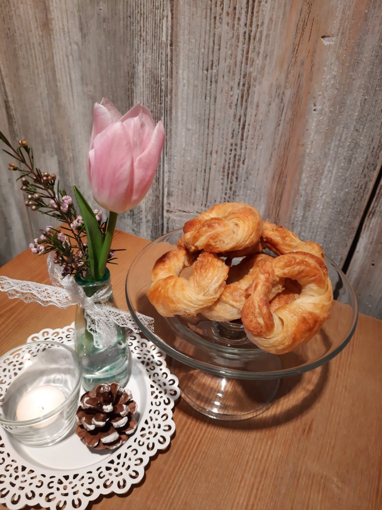 Hier probierte ich mich das erste mal an einem Quarkblätterteig aus. Daraus entstanden Marzipangipfelis. Mir schmeckten sie sehr gut, allerdings müsste das Handling und die Optik noch etwas verbessert werden.