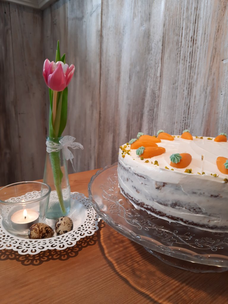 Rüebli-Torte im Frühling??? Lange war dies für mich ein typischer Herbstkuchen. Aber er passt wunderbar in diese Jahreszeit.