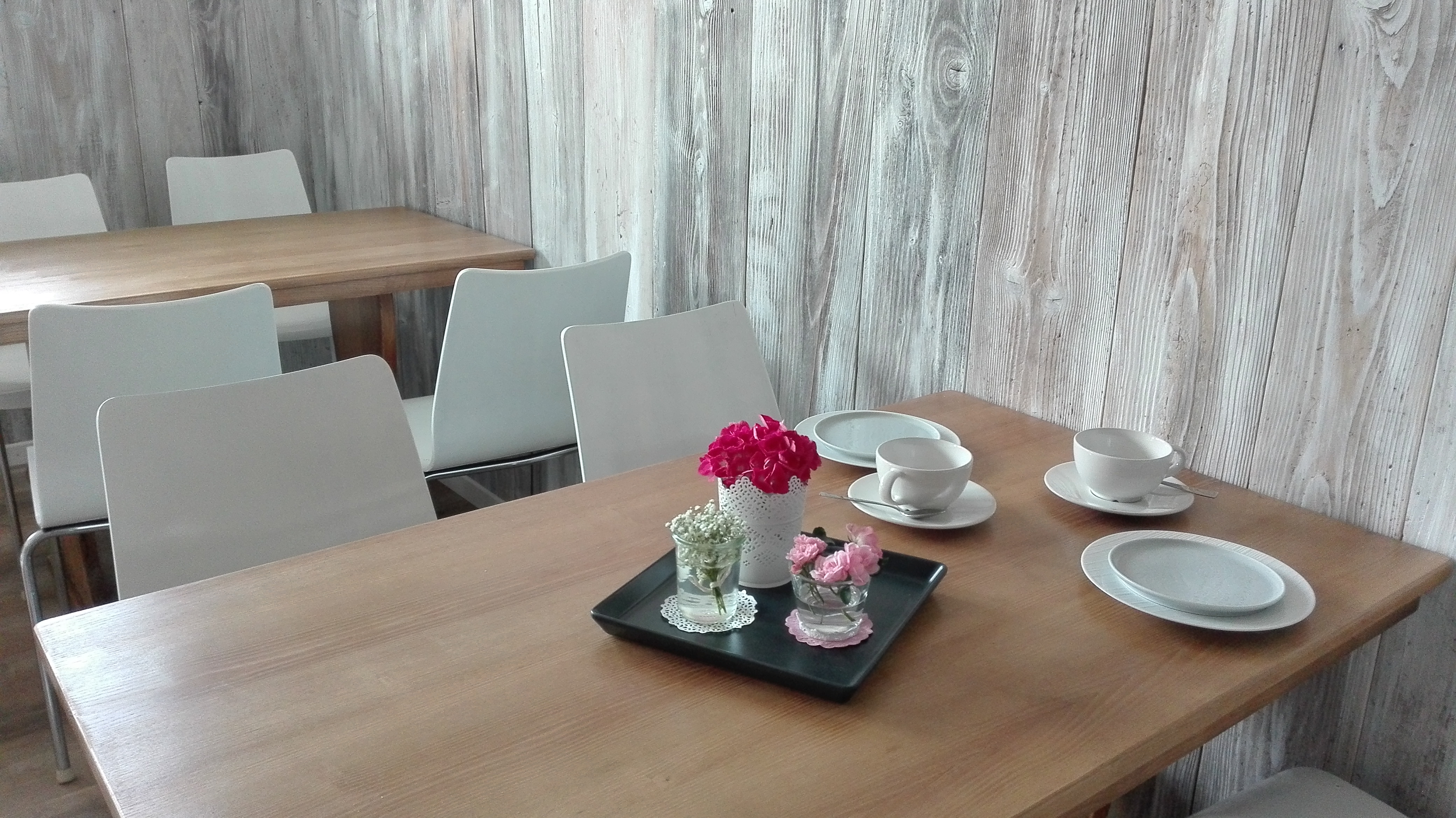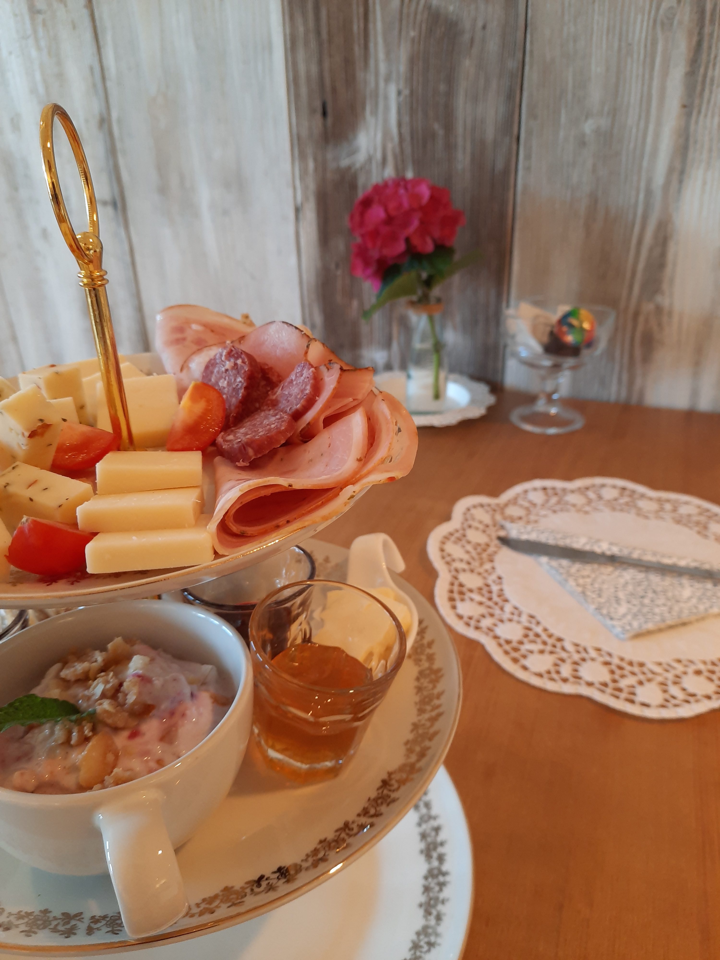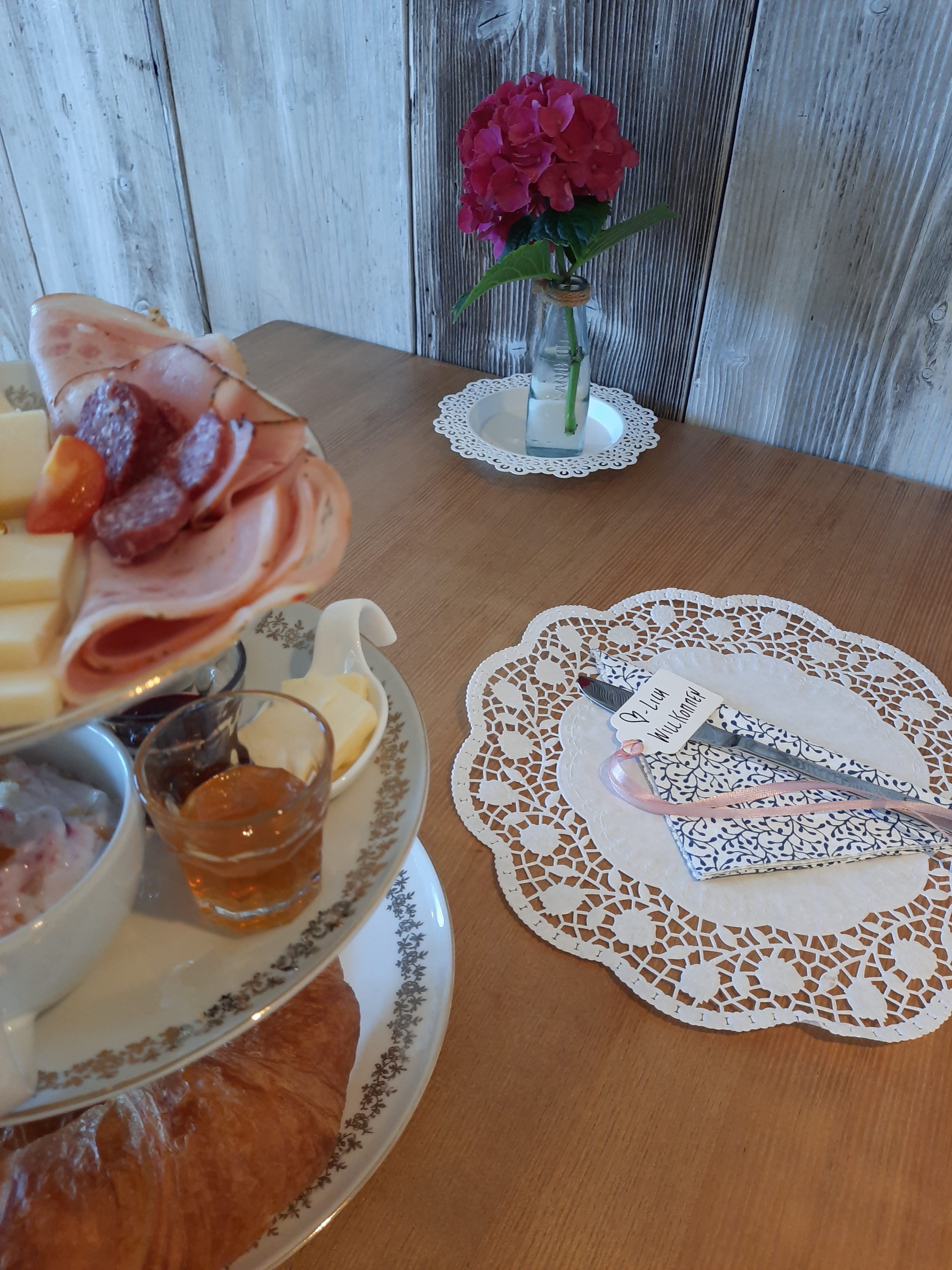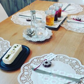 Frühstückstisch im Cafe. Gerne reserviere ich Dir einen Tisch und decke ihn schön ein.