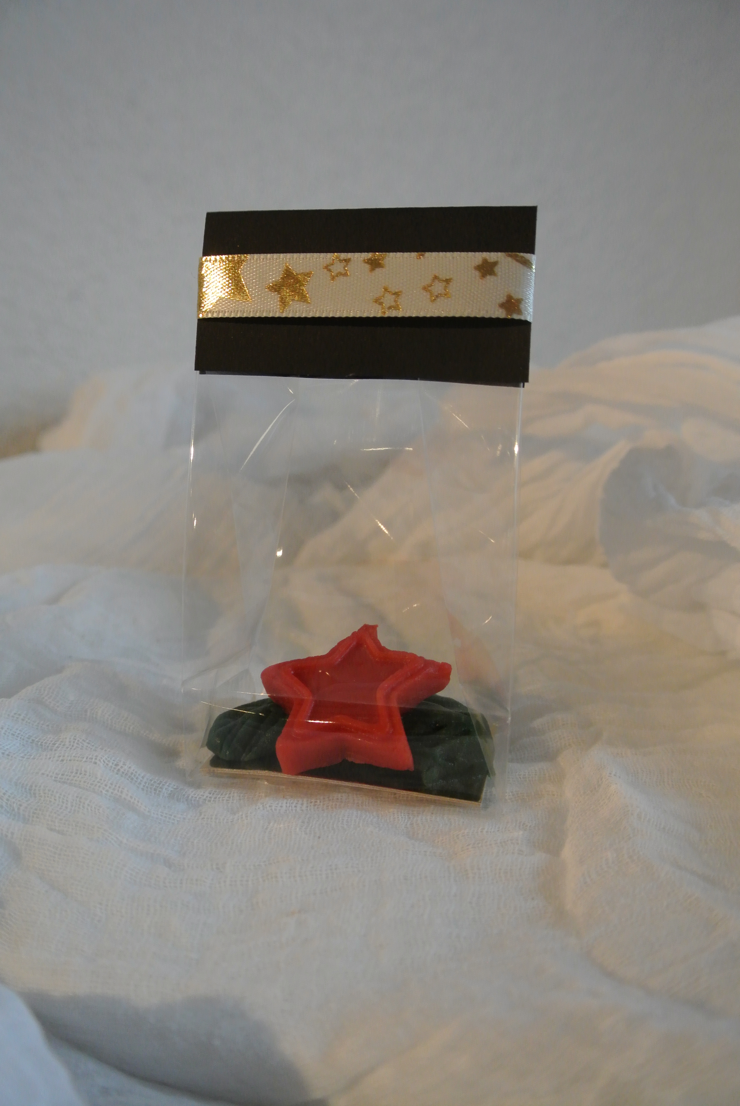 Aus dunkelgrünem Marzipan wird ein Zweiglein verziert mit einem roten Weihnachtsstern. Alles aus Marzipan.