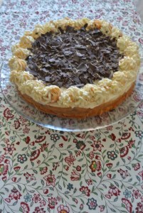Anschliessend den steif geschlagenen Rahm draufgeben und Glattstreichen.2-3 h kühl stellen.