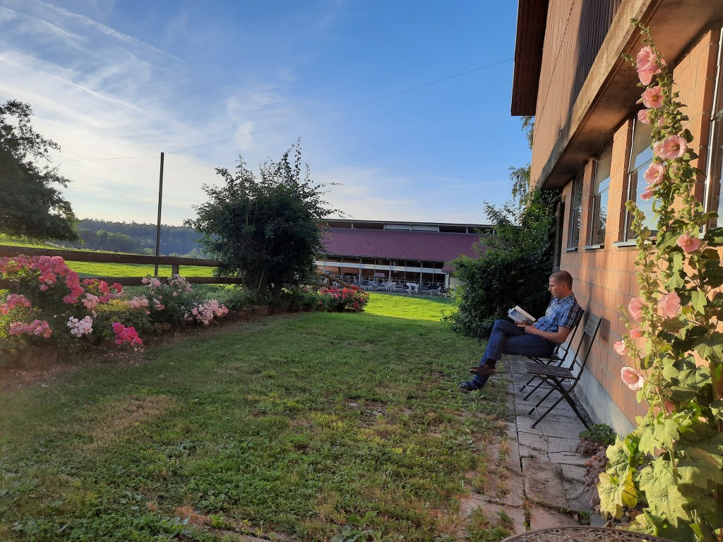 Bei der Westseite unsres Hofes, an unsrer kleinen Rosenstrasse haben wir 1 Platz um ein Wohnmobil/Wohnwagen zu stellen. Bei schönem Wetter kannst Du den Tag mit Abendsonne ausklingen lassen und den Kühen im Nahe gelegenen Stall(100m) zuschauen. Jeweils Di und Sa besteht die Möglichkeit, den Tag mit einem leckeren Frühstück in meinem Hofcafe zu beginnen.